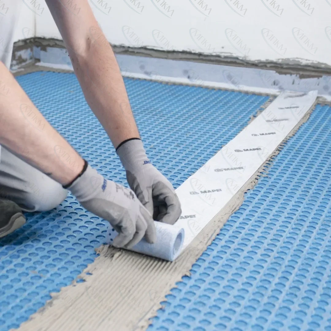 - Шаг 5. Финишный слой: После схватывания базы на края ленты наносится второй слой гидроизоляции, полностью скрывая армирующее полотно.