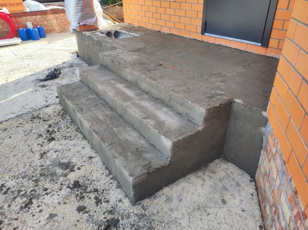 - Нанесите первый слой толщиной ~1 мм на всю поверхность крыльца