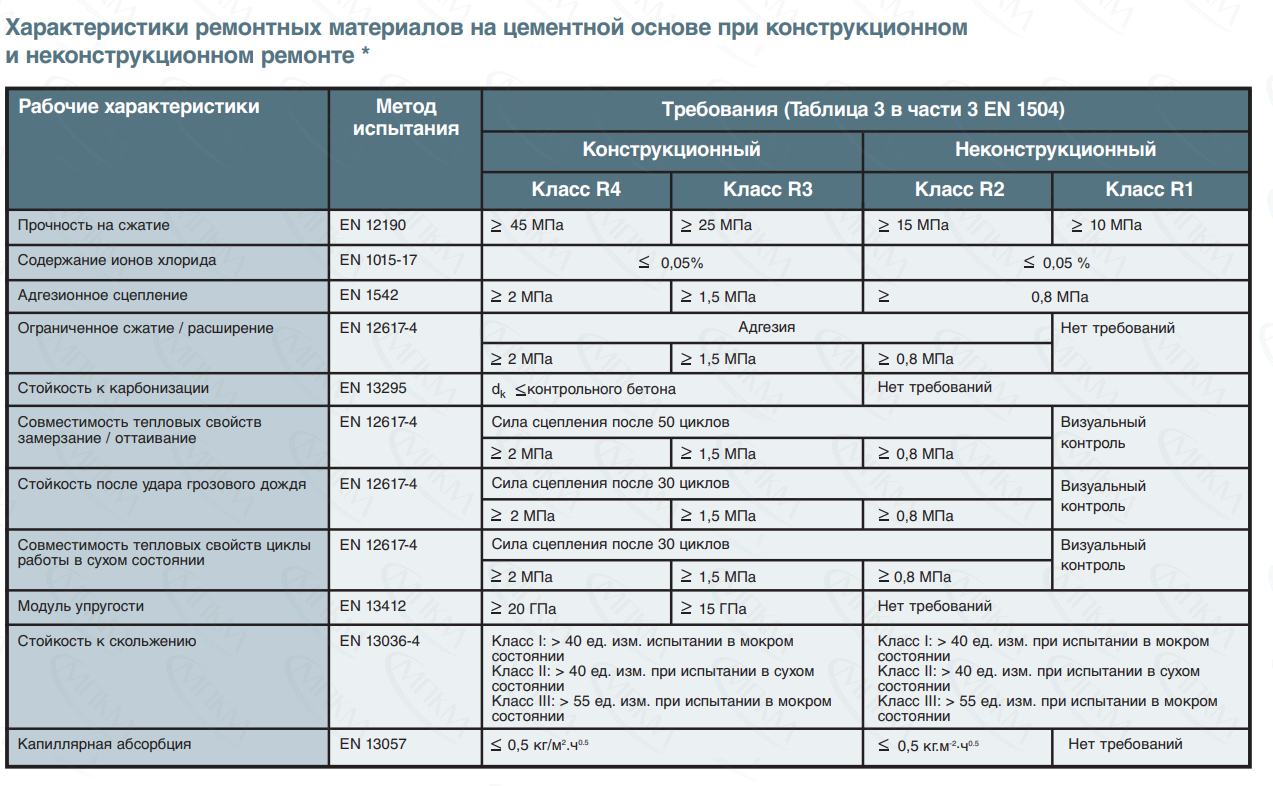 - EN 1504-3 - Конструкционные и неконструкционные ремонтные растворы
