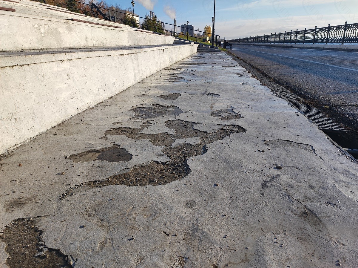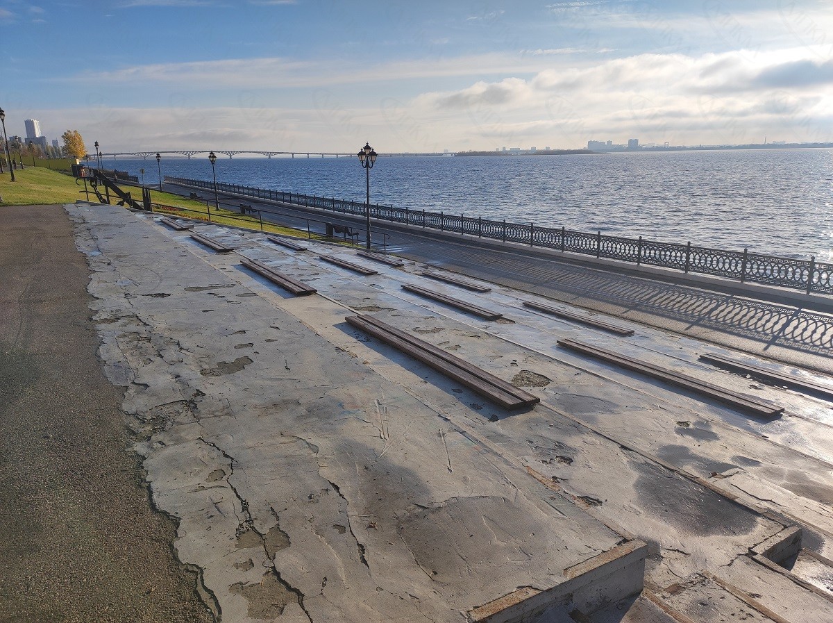 Лестница летнего амфитеатра на Набережной Космонавтов в Саратове, отремонтированная несколько лет назад, в настоящее время демонстрирует признаки серьезного разрушения. Визуальный осмотр выявил многочисленные дефекты, указывающие на системные ошибки в выборе материалов и технологии работ.