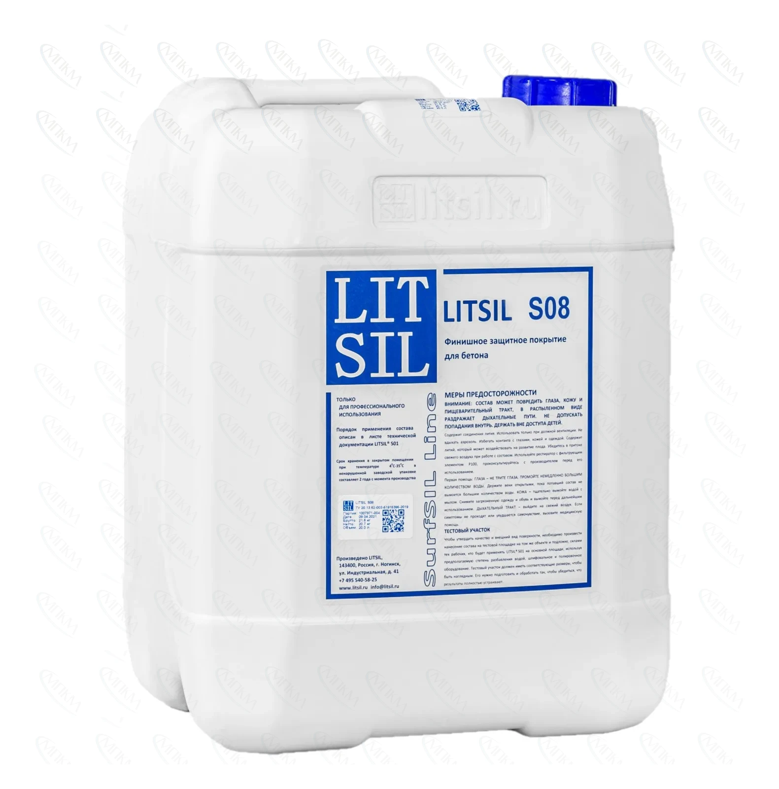 LITSIL S08 — это гидрофобизатор для минеральных поверхностей, который придаёт водоотталкивающие свойства бетону и другим основаниям, снижает водопоглощение и повышает стойкость к циклам замораживания-оттаивания.