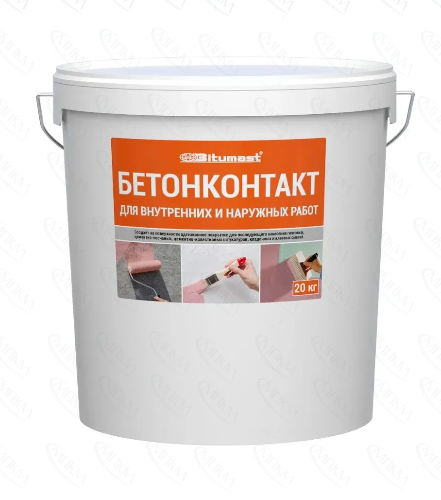 Адгезионный грунт «Бетонконтакт» Bitumast — это готовый к применению грунтовочный состав на основе воды, акрилового латекса, минерального наполнителя и функциональных добавок. Материал предназначен для улучшения сцепления штукатурных и отделочных материалов с плотными, гладкими и слабо впитывающими основаниями за счет формирования шероховатой поверхности. Изготавливается по ТУ 2316-034-52124071-2010.
