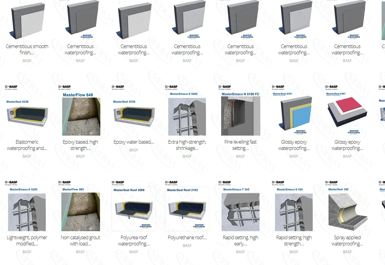 На сегодняшний день портфель предложений концерна содержит свыше 200 объектов BIM. В ближайшее время он пополнится более чем 400 моделями (включая системы гидроизоляции, напольные и защитные покрытия, решения для ремонта бетонных конструкций, системы контроля и многое другое), которые охватят 13 сегментов строительной отрасли. Все эти цифровые решения от брендов BASF (Master Builders Solutions, Watson Bowman Acme, Senergy и Neopor) представлены на 10 языках. В будущем планируется расширение данного портфеля.