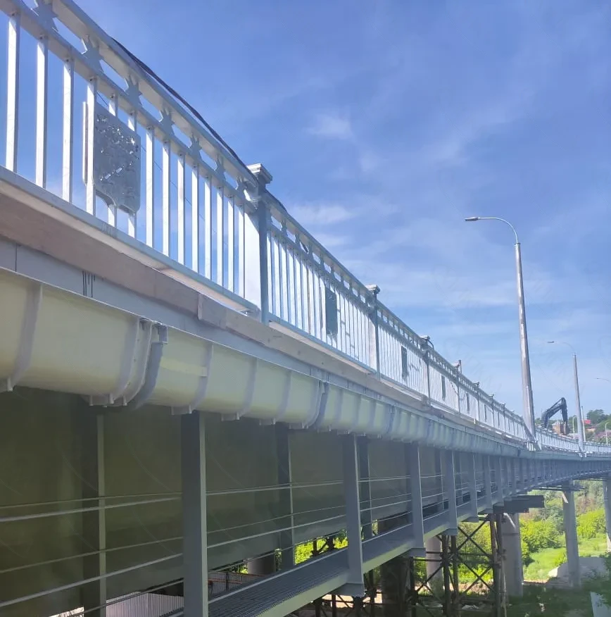 В столице Чувашской Республики завершена первая часть ремонта Гагаринского моста. На всем протяжении мостового сооружения установлено более 800 метров стеклопластиковых водоотводных лотков Monsterlot производства Нанотехнологического центра композитов.
