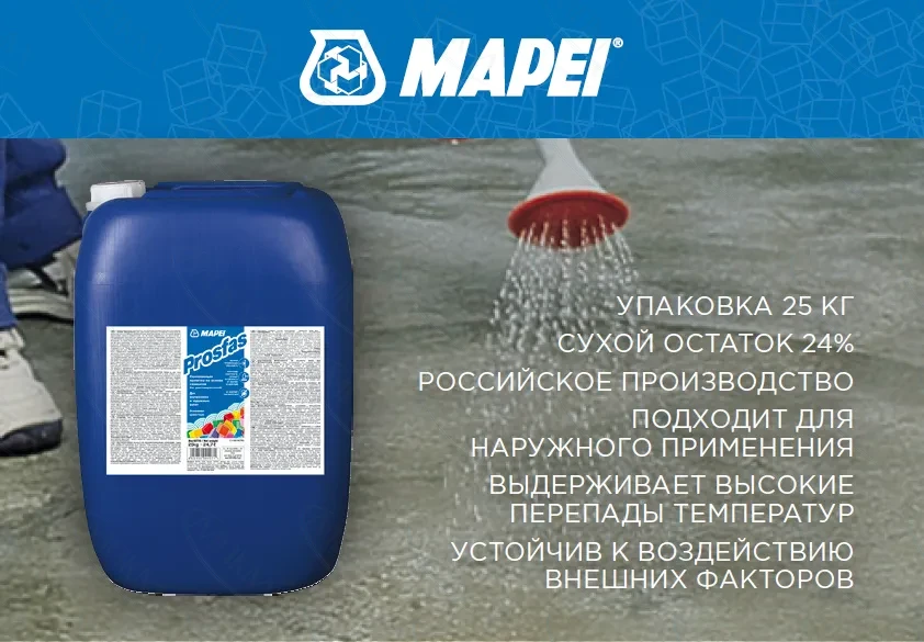 MAPEI представляет новую улучшенную формулу материала Prosfas, специально разработанную для потребностей российского рынка. Это укрепляющая пропитка с высокой проникающей способностью на основе силикатов без содержания растворителей для цементных оснований. Данный продукт является аналогом хорошо зарекомендовавшего себя итальянского материала Prosfas во всем мире. Новая версия российского продукта выпускается на заводе в Ступино, Московская область.