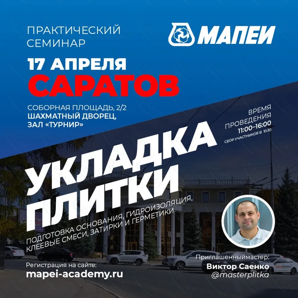 Практические мастер-классы «Система материалов MAPEI для укладки керамической плитки, керамогранита, мозаики и натурального камня».