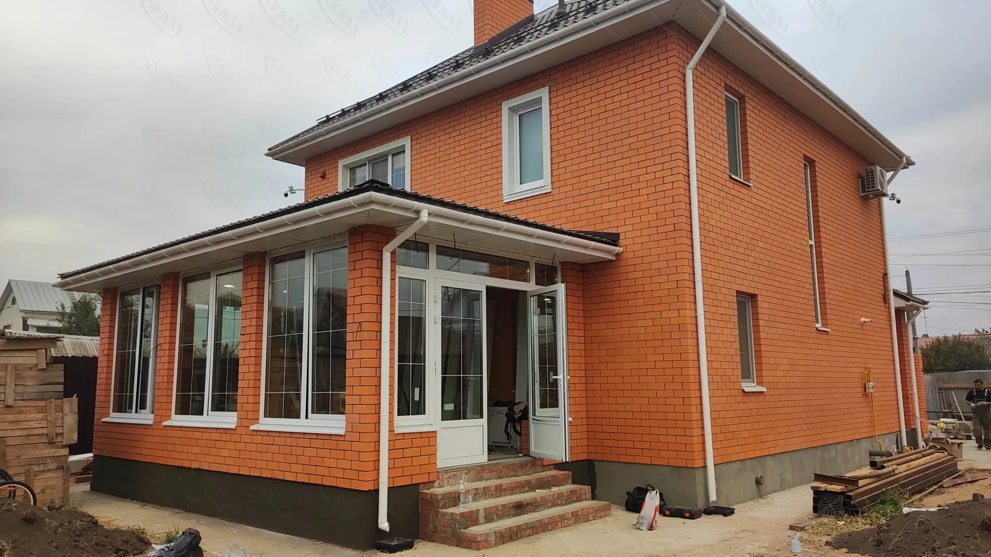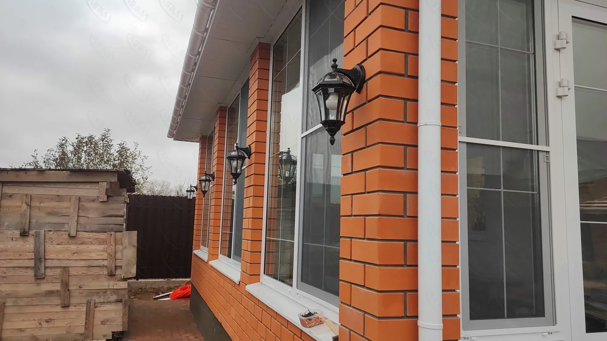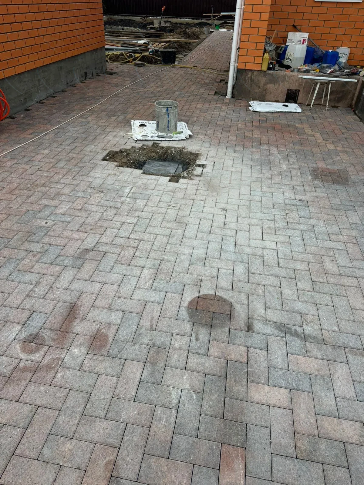 Монтаж клинкерной плитки на цоколе и клинкерной брусчатки на лестницах