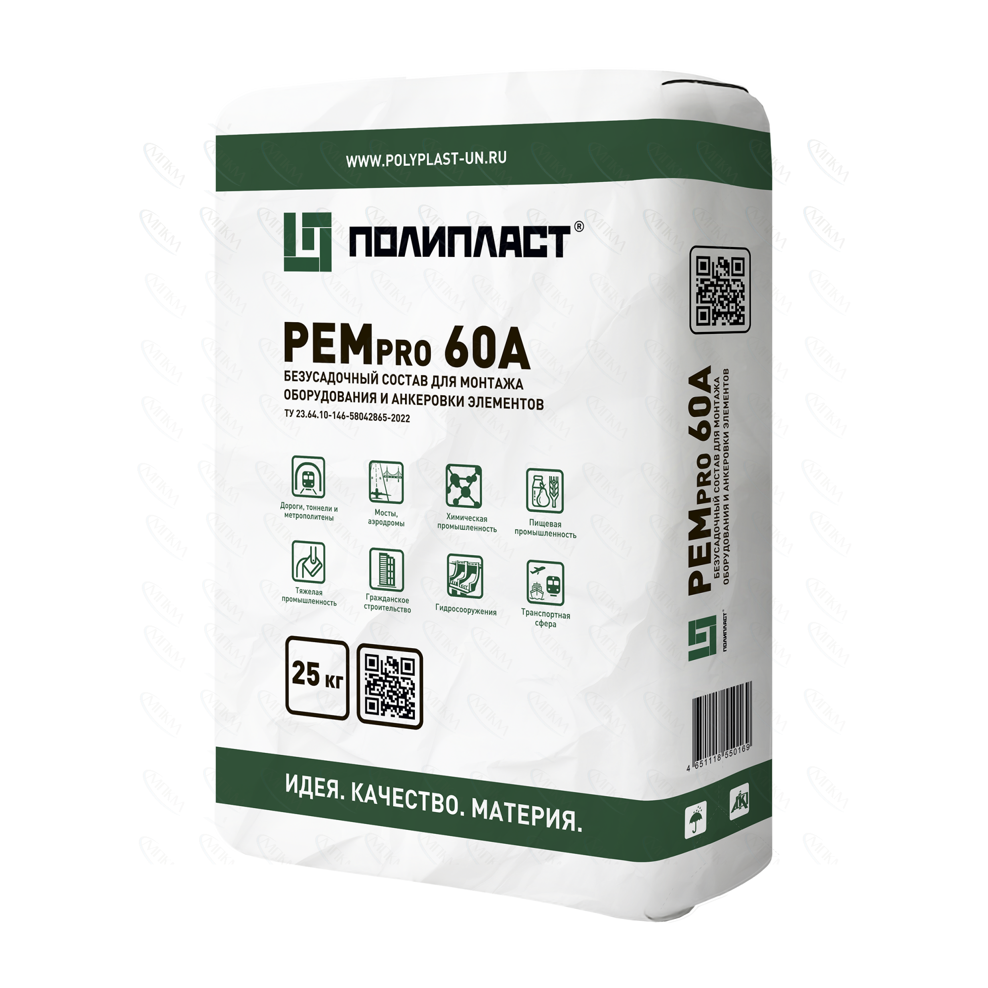 РЕМпро 60А – это сухая смесь с максимальной крупностью заполнителя 2,5 мм, на основе высокопрочного цемента, фракционированного песка, с полимерной фиброй и специальными добавками. Изготавливается по ТУ 23.64.10-147-58042865-2022. После смешивания с водой образует реопластичный, литой гомогенный состав, который возможно применять методом укладки в опалубку на толщину от 10 до 200 мм (и более при добавлении крупного заполнителя) *. Не содержит хлоридов и металлических заполнителей. Температура применения от +5°С до +35 °С.