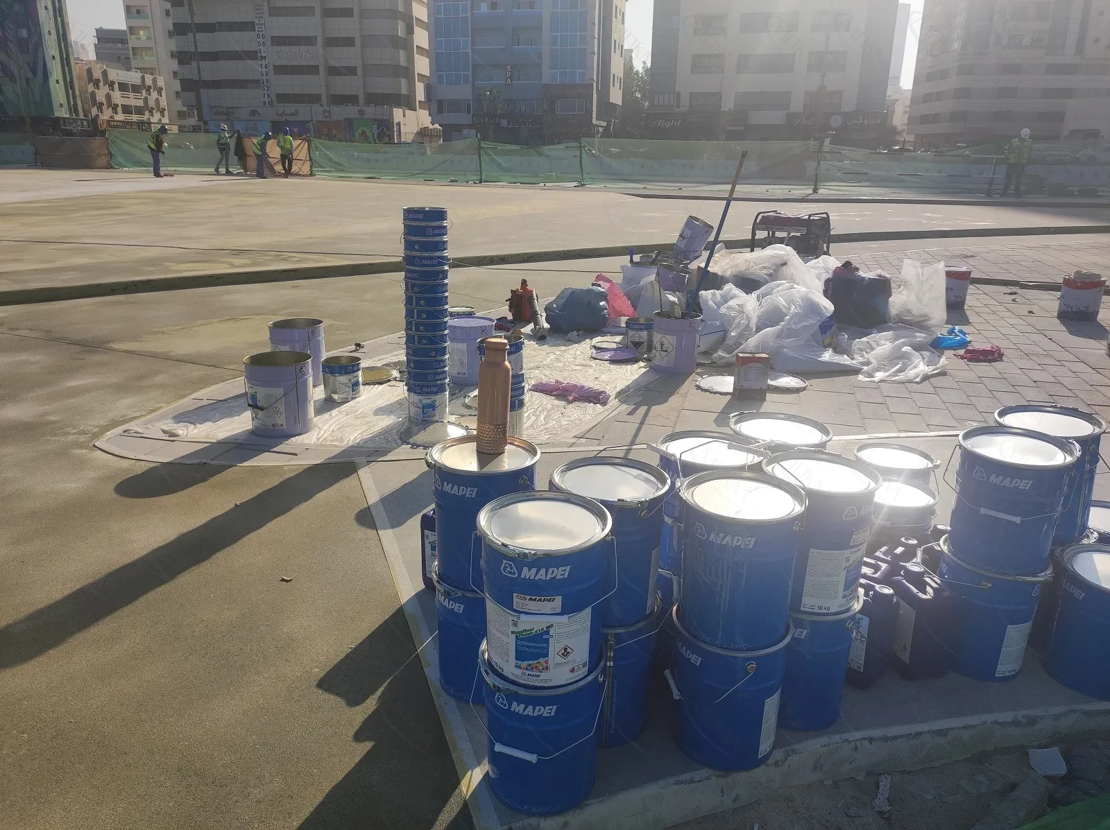 - Защитное, и износостойкое финишное покрытие для наружных гидроизоляционных систем, таких как мембран из Mapefloor PU 400 и Mapefloor PU 410, полностью покрытые кварцевым песком.