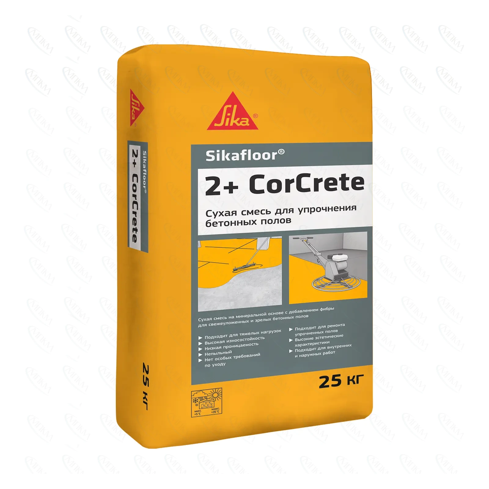 Sikafloor®-2+ CorCrete — это порошкообразный упрочнитель на цементной основе с различными химическими добавками, усиленный твердым минеральным и неметаллическим заполнителем, в том числе корундом, и фиброй. Используется для устройства высокопрочных и долговечных бетонных полов с гладкой нескользкой поверхностью, обладающих повышенной стойкостью к проникновению масел и жиров.