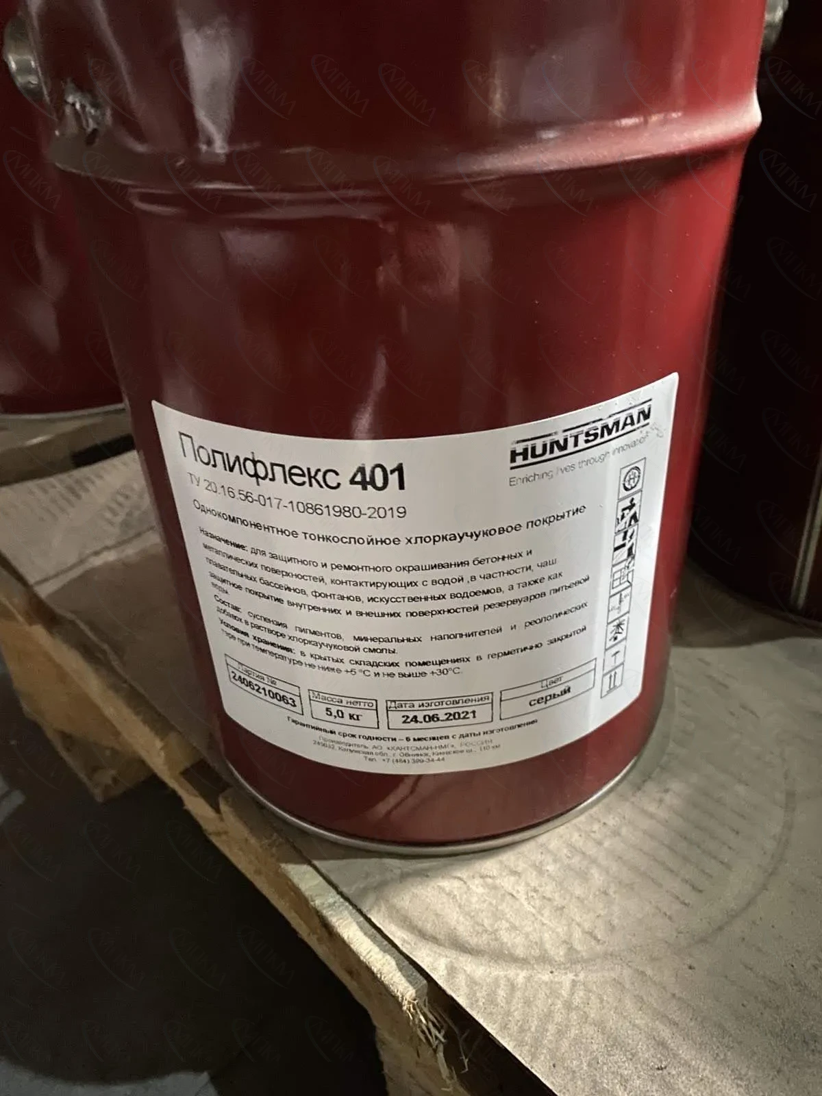 ПОЛИФЛЕКС 401 (ТУ 20.16.56-017-10861980-2019) - это однокомпонентная высыхающая хлоркаучуковая грунт-эмаль. Содержит органические растворители.