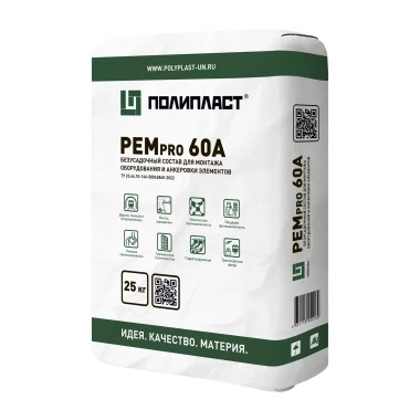 РЕМпро 60А – это сухая смесь с максимальной крупностью заполнителя 2,5 мм, на основе высокопрочного цемента, фракционированного песка, с полимерной фиброй и специальными добавками. Изготавливается по ТУ 23.64.10-147-58042865-2022. После смешивания с водой образует реопластичный, литой гомогенный состав, который возможно применять методом укладки в опалубку на толщину от 10 до 200 мм (и более при добавлении крупного заполнителя) *. Не содержит хлоридов и металлических заполнителей. Температура применения от +5°С до +35 °С.